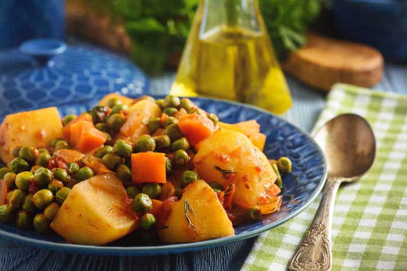 One can find many variations of this traditional Greek dish, with the most popular being this classic version of peas and potato stew with carrots in a tomato sauce.
