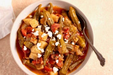 A delicious and super healthy Greek okra stew recipe (Bamies Laderes) with potatoes, cooked in rich aromatic tomato sauce! Okra is an ingredient that is often under appreciated, but if you cook it the right way it’s definitely worth giving it a try.