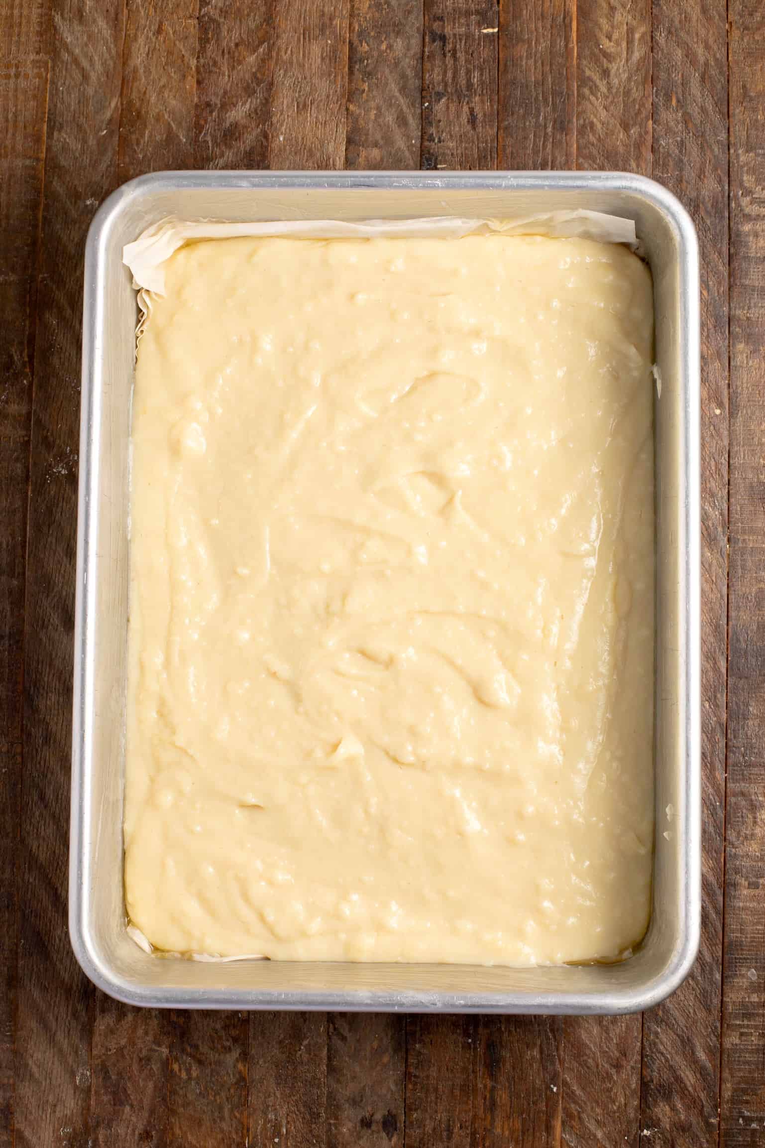 To make this delicious bougatsa recipe, you’ll require a generously-sized baking tray, approximately 20×30 cm / 8×12 inch in dimensions. Using a pastry brush, generously coat the bottom and sides of the tray with butter.