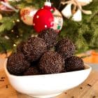 - Place some biscuits around the cake and crush some on top. With a knife scratch a bar of chocolate and sprinkle with the grated chocolate and some icing sugar. Use a sharp knife, dipped into water to cut into portions (each biscuit a portion) and pour some chocolate sauce.