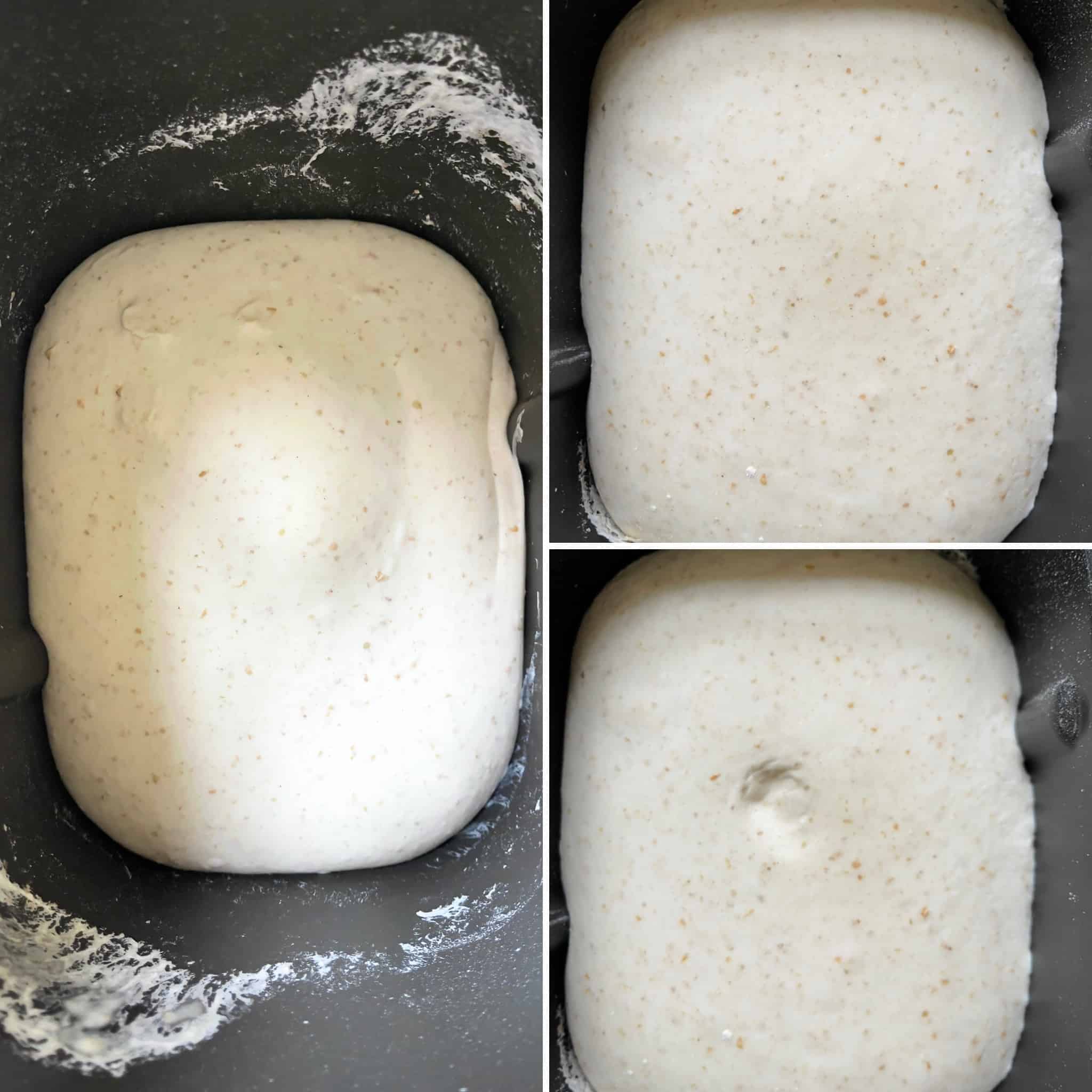 - If you don’t have a bread machine use your stand mixer. Put all the ingredients in, put the dough hook on, set it to low and let it knead for 10-15 minutes until the dough has come together. Let the dough rest for 1 hour and repeat. Do this another 2 times until the dough is smooth and elastic. Cover it with cling film and let it rise until it has risen by a quarter (25%).