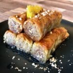 Greek baklava rolls (saragli) made to perfection! An amazing combination of crispy golden phyllo wrapped around flavourful nutty filling, bathed in syrup with the aromas of lemon cinnamon and clove.