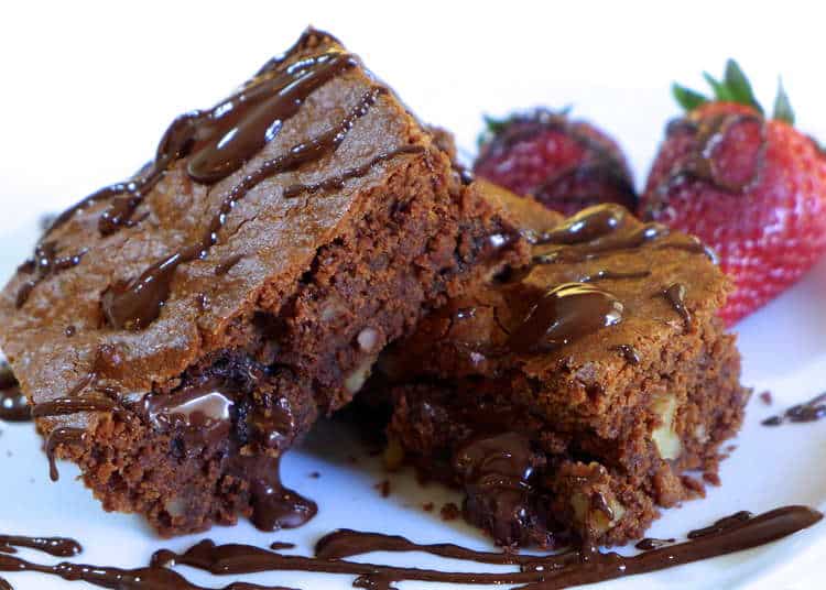 5. Serve these delicious Lenten chocolate brownies, while still warm with melted couverture and fresh strawberries. Enjoy!
