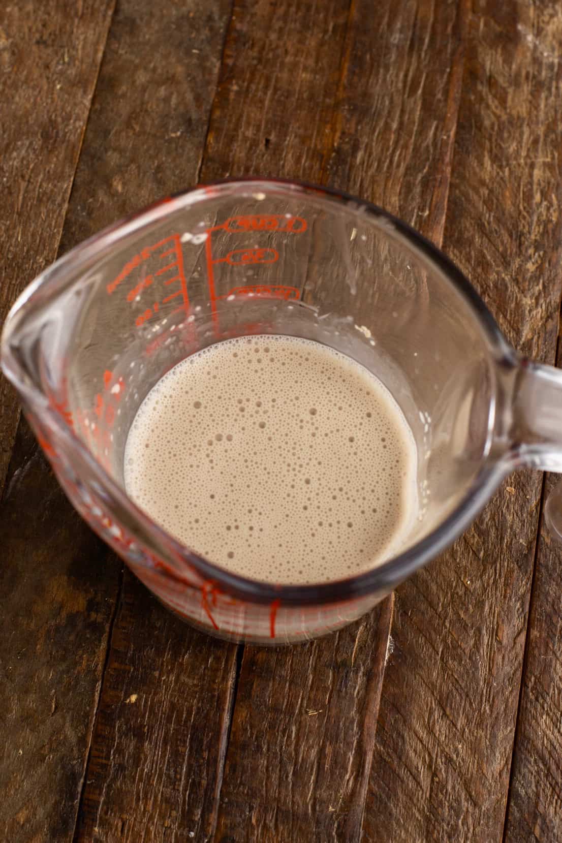 Meanwhile, combine the yeast and tepid water in a large mixing bowl. Whisk it until frothy.