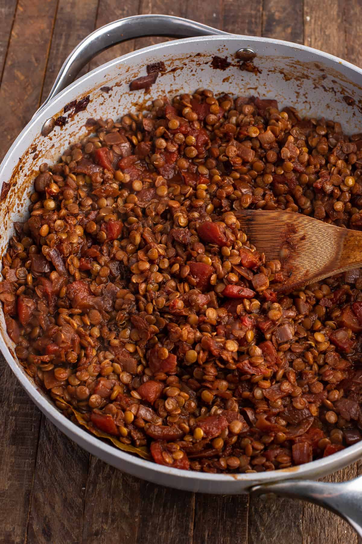 Tip: Keep an eye on your lentil sauce when its cooking. If it looks like its drying out add a little more water and stir.