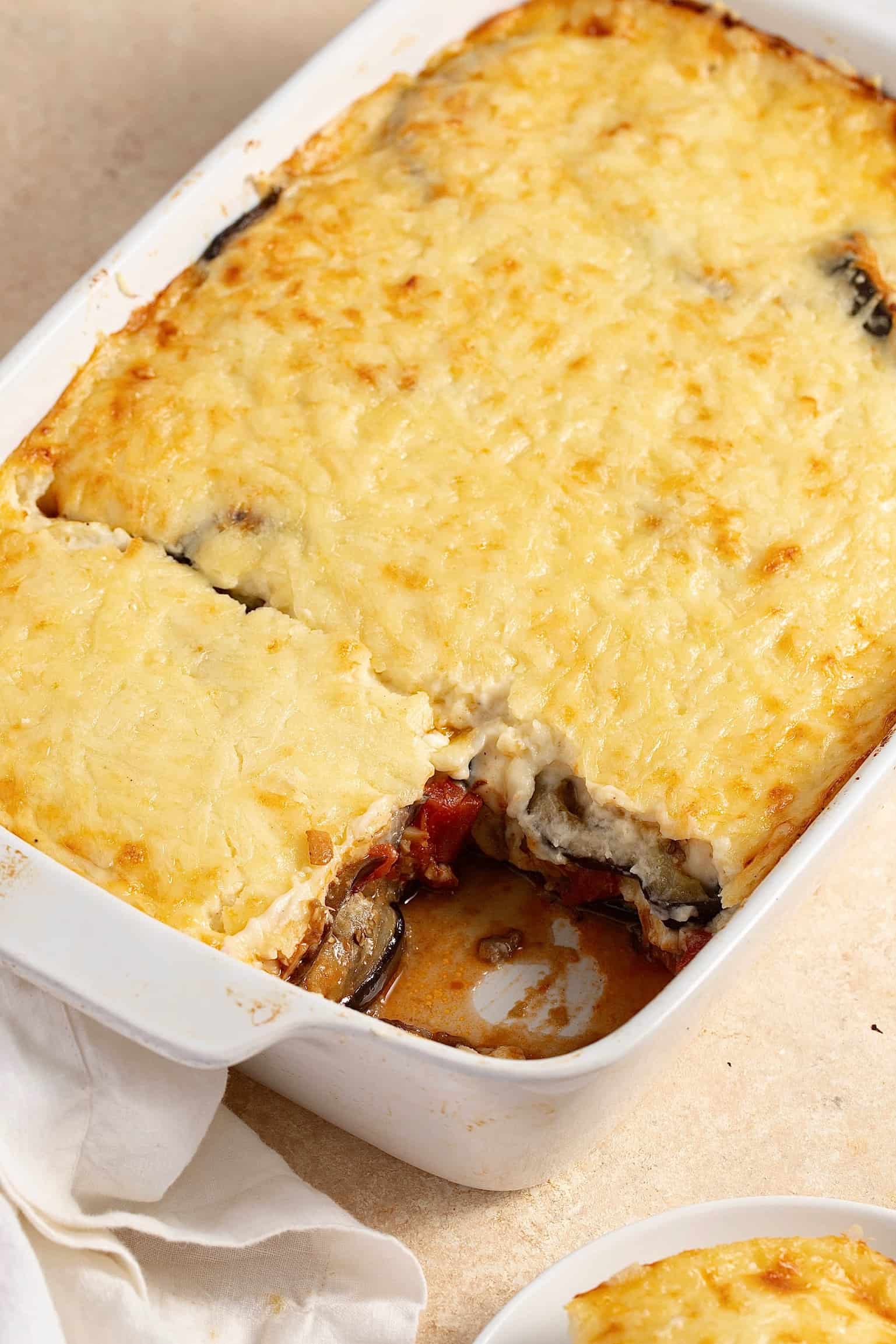 If you are feeling a little lazy or don’t have too much time, you can skip the whole béchamel and try topping with good quality grated cheese instead!