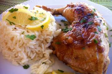 Lemony Greek Rice Pilaf (Pilafi) Recipe with Chicken legs